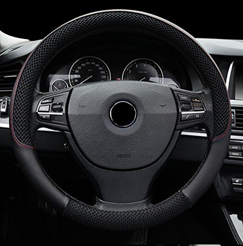 Para um toque mais subtil e desportivo é a capa do volante de couro da Valleycomfy. Esta capa está disponível numa variedade de cores de acento, incluindo preto, azul, vermelho, e branco para combinar com o seu interior. É fabricada em couro genuíno de alta resistência, muito macio e espesso, encaixando volantes de 14,5 polegadas a 15,5 polegadas de diâmetro. Esta é uma óptima opção se não quiser nada cintilante, oferecendo-lhe uma melhor aderência no seu volante enquanto acrescenta mais estilo ao seu interior. É uma das opções mais caras da nossa lista, mas não por muito.