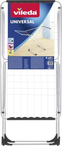 Com um comprimento de secagem de 18 metros, o Vileda Universal é adequado para o uso diário e pode acomodar uma quantidade significativa de roupas, incluindo peças maiores. Suas pernas dobráveis facilitam a abertura e o fechamento do estendal, tornando-o conveniente para armazenamento quando não está em uso.