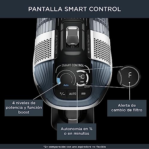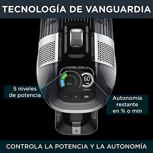 Falamos neste modelo de uma potência de sucção de 230 watts, mas as suas virtudes são muito mais além da sua grande potência de sucção, gozando também de uma fantástica autonomia de 85 minutos, que também pode ser prolongada até 170 minutos, graças a um sistema de baterias intercambiáveis, e juntamente com o aspirador vêm duas baterias incluídas.