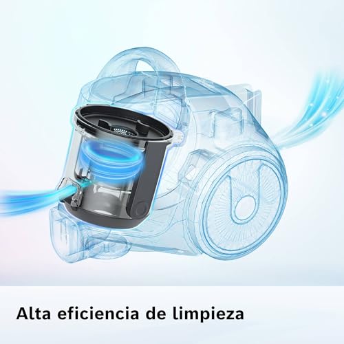 Tem um filtro HEPA H10 higiénico e lavável, para que os detritos e o pó permaneçam no seu receptáculo e não regressem ao ambiente. Do mesmo modo, tem um sistema PowerProtect que garante a manutenção do seu poder de sucção mesmo quando está quase cheio. Tem uma capacidade de 4 litros, pelo que não terá de parar no meio do trabalho para esvaziar o dispositivo. O seu raio de acção é de 10 metros, pelo que não terá problemas com as fichas.
