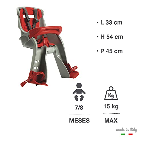 A funcionalidade desta cadeira também é destacada pelo seu suporte de libertação rápida, que permite fácil remoção da bicicleta. Além disso, o acolchoado da cadeira é removível para facilitar a lavagem.