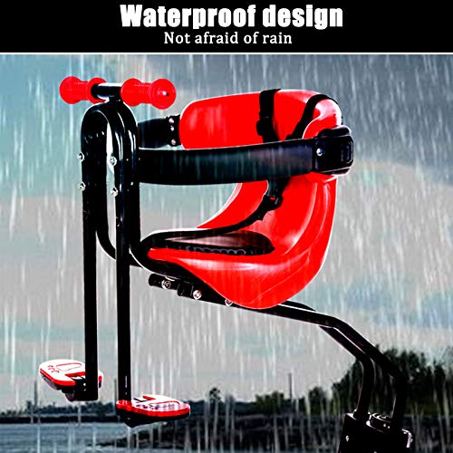 Em relação à opção traseira, a cadeirinha frontal também coloca mais à prova o equilíbrio do condutor e muitas vezes dificulta a pedalada dos pais inexperientes; portanto, é necessário adquirir um mínimo de prática antes de lidar com o tráfego urbano com a criança a tiracolo.