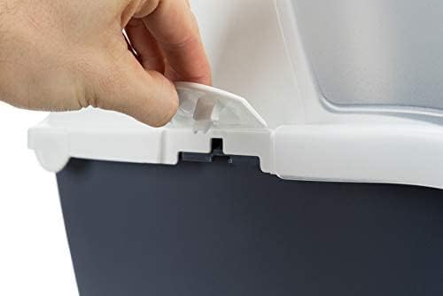 Tem uma porta basculante transparente, que ajudará o seu gato a não se sentir demasiado fechado quando utilizar a caixa da areia, e uma grande abertura superior que facilita a limpeza da areia com a pá. Além disso, é muito fácil de desmontar completamente, para que possa ser lavado convenientemente.