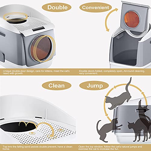 Este WC para gatos com entrada dupla de Sailosun tem um design original que combina a típica caixa de areia coberta com porta frontal, com uma entrada superior, desta forma o seu gato pode escolher a entrada que mais lhe agrada.