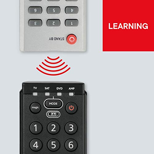 Em termos de funções, oferece o mínimo, mas é um comando de televisão universal ideal para pessoas idosas que não requerem muitas funções. Na verdade, é o modelo mais vendido da Amazon pela sua boa funcionalidade e preço realmente baixo. É compatível com muitas marcas para televisores, equipamento de áudio e vídeo.