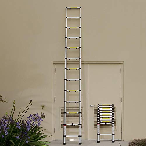 De acordo com o fabricante, a escada telescópica Ohuhu Y17-80100-11-AA é feita de uma liga de alumínio de primeira classe, leve e fácil de transportar. Os degraus da escada podem transportar até 150 quilos e são adequados como ajuda na pintura de paredes, troca de lâmpadas ou limpeza de janelas. Graças a um mecanismo de extensão integrado, a altura da escada telescópica pode ser ajustada até um comprimento de 4,7 metros. Os certificados de travamento são concebidos para manter as escadas numa posição segura. Um botão de dois polegares incorporado permite que a escada seja puxada para dentro rápida e suavemente quando o trabalho é feito.
