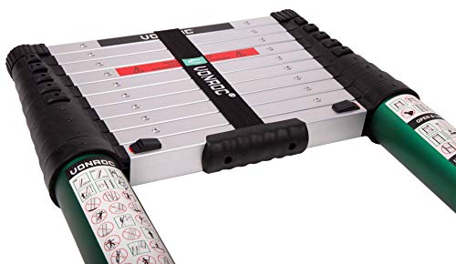 O alumínio robusto transporta uma carga máxima de 150 quilos. A escada telescópica atinge dimensões de 320 x 54 x 10 centímetros quando estendida. Quando se puxa os degraus, estes devem ser trancados automaticamente. De acordo com o fabricante, todos os degraus são seguros e controlados com o sistema de fecho suave para transporte. Isto é para evitar ferimentos. Na posição retraída, a escada Vonroc de 11,3 quilos tem as dimensões de 85 x 54 x 10 centímetros. Esta escada é ideal para: