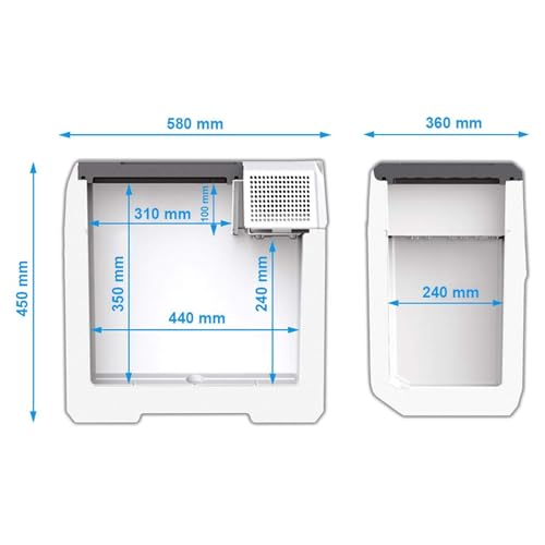 O frigorífico possui um visor digital de fácil utilização, permitindo um controlo preciso da temperatura. Com o seu compressor refrigerador de 12V/230V, é capaz de arrefecer e congelar numa gama de temperaturas de +10°C a -10°C, assegurando a conservação adequada de alimentos e bebidas.