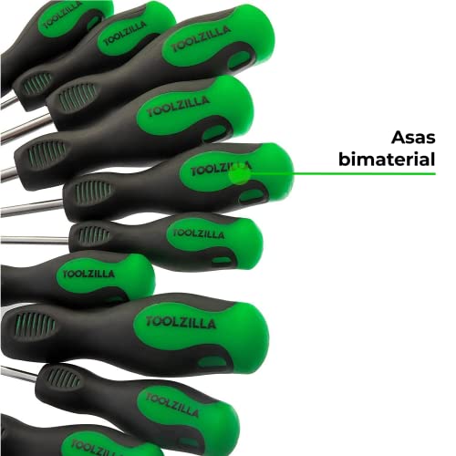 Este conjunto de chaves de fendas tem pontas magnéticas que o tornam adequado para segurar facilmente os parafusos que são utilizados com estes, por sua vez são feitos de folhas cromadas, têm indicação do tamanho de cada ponta no cabo, isto é ideal para saber em que situação cada uma delas deve ser utilizada. Por outro lado, eles têm bits padrão, Phillips e Pozidriv.