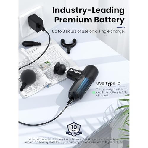 A longa duração da sua bateria é algo a destacar, o que lhe permite uma potência contínua e estável durante toda a massagem profunda sem diminuir a sua eficácia