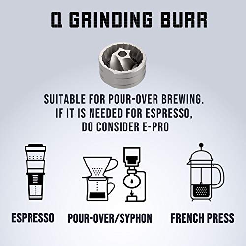 O moedor de café 1ZPresso Q2 é pequeno, compacto, e fácil de armazenar no seu Aeropress. É feito de alumínio com um mecanismo interno de aço inoxidável e cortadores, tornando-o durável e de longa duração.