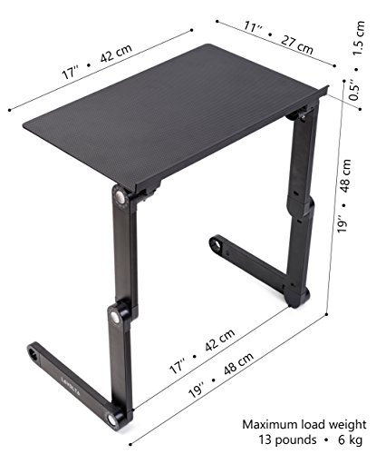 Com dimensões de 42 x 27 cm, o tabuleiro é universalmente compatível com computadores portáteis com tamanhos de ecrã entre 7 e 16 polegadas. Este suporte tem pernas que podem ser ajustadas à medida que o desejar. Rodam 360° e são adequados para múltiplas configurações. Uma vez definida a posição correcta, um sistema de bloqueio integrado nos pés permite que o suporte permaneça no lugar.