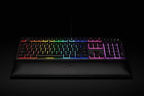 O Razer Ornata V2 é um grande teclado de jogo. Tem interruptores mecânicos únicos Razer Hybrid Mecha-Membrane que misturam a suavidade das cúpulas de borracha e o estalido dos interruptores mecânicos. Infelizmente, requerem um pouco mais de força para accionar do que a maioria dos interruptores mecânicos. O teclado possui uma iluminação RGB agradável e vem com um descanso para o pulso bastante confortável.