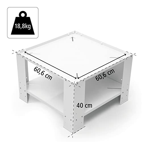 O suporte da máquina de lavar roupa Xavax é feito de metal e pode suportar 150 kg. Pode acomodar uma máquina de lavar roupa de dimensões 60 * 60 cm. As dimensões deste suporte de máquina de lavar roupa são 60,3 * 60,3 cm, os 0,3 cm extra são para parafusos e porcas.
