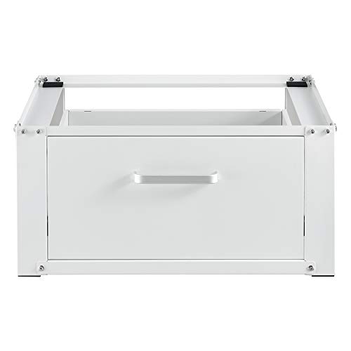 No caso de colocar uma máquina de lavar roupa e uma máquina de secar roupa, este suporte seria colocado no meio de ambas para assegurar primeiro a estabilidade. E, em segundo lugar, a prateleira amovível serviria de suporte para segurar até 10 kg de roupa, para os introduzir na máquina de secar. É, portanto, uma peça de equipamento perfeita em caso de falta de espaço em casa. No entanto, vale a pena mencionar que só funciona com máquinas de lavar até 60,5 cm de largura.