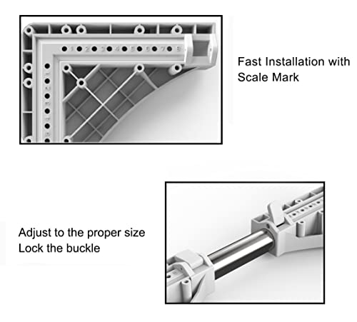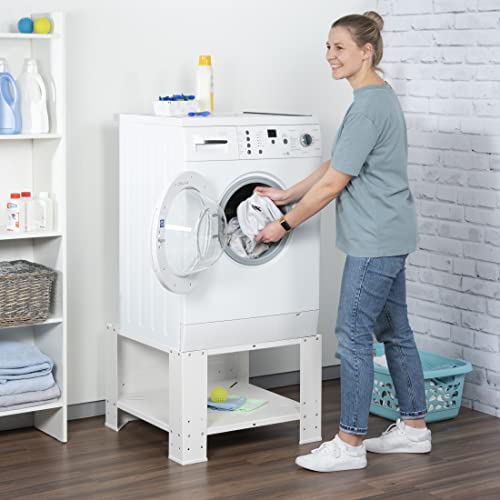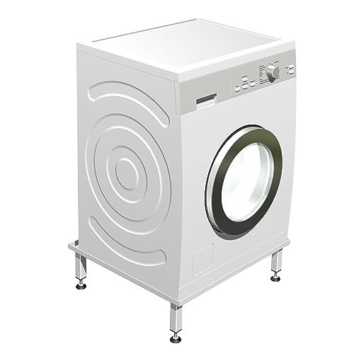 Um suporte de máquina de lavar roupa ajustável em largura, comprimento e altura é uma opção recomendada porque se mudar a sua máquina de lavar roupa para uma de dimensões diferentes ou quiser utilizar o mesmo suporte para outro aparelho, pode utilizar o mesmo suporte e este irá adaptar-se ao tamanho.