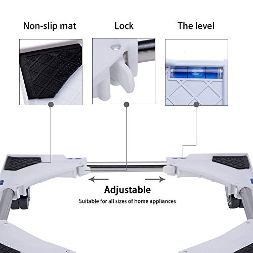 Como suporte de lavadora ajustável, tem uma vasta gama de capacidade para caber na maioria das máquinas de lavar de topo e de carregamento frontal. É muito conveniente na sua utilização porque não tem de se preocupar com a altura da sua máquina. Este suporte multiusos também pode ser utilizado para frigoríficos, refrigeradores de ar, máquinas de lavar louça, e outros electrodomésticos.