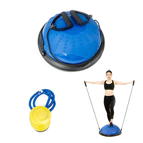 Entregue com a sua bomba para encher, esta meia-bola tem um diâmetro de 62 cm e pesa cerca de 5,8 kg. É capaz de suportar uma carga máxima de 150 kg. Irá insuflá-lo de acordo com o nível de dificuldade que pretende impor a si próprio. À medida que avança, ajustará a inflação para responder a novos desafios.