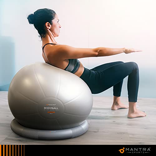 Agora temos a bola de pilates Mantra Sports. Melhora a tradicional Bola de Exercício. Ainda mais ergonómica do que uma bola clássica suíça, irá acompanhá-lo em todos os seus exercícios físicos e pode também ser utilizada como cadeira de escritório. Faixas de resistência removíveis são facilmente removidas.