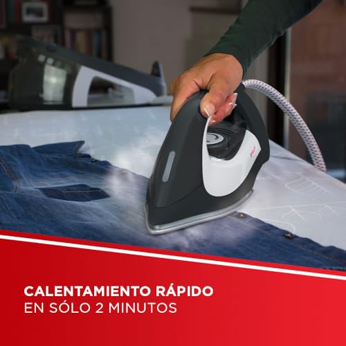 O Rowenta Compact Steam Pro DG7623 é um ferro com caldeira de alta pressão com uma taxa de 6,3 bares e capacidade para emitir um disparo de vapor de 325 gr/min e vapor contínuo de 100 gr/min. Com essa potência, é capaz de eliminar as rugas mais difíceis, oferecendo resultados profissionais.