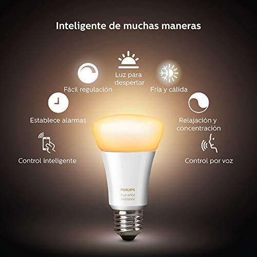 Um pouco mais cara (quase 30 euros), mas semelhante ao Sengled E27 em termos de funcionalidade, a Philips Hue White é uma lâmpada ligada de baixo consumo ecológico (também chamada A+ energia) que pode ser modulada e gerida para iluminação remota da sua casa utilizando uma aplicação móvel ou através do Amazon Alexa, Apple Homekit e Google Home.
