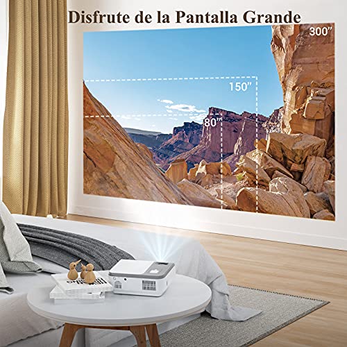 Quanto ao tamanho do ecrã, podemos obter 300 polegadas. E é o que tem a melhor luminosidade, 8.000 lúmens LED, o que equivale a cerca de 1.300 lúmens ANSI, o suficiente para o home theater. Finalmente, mencionar que tem ligações diferentes: projector com 1 entrada HDMI, 2 USB, e AV.