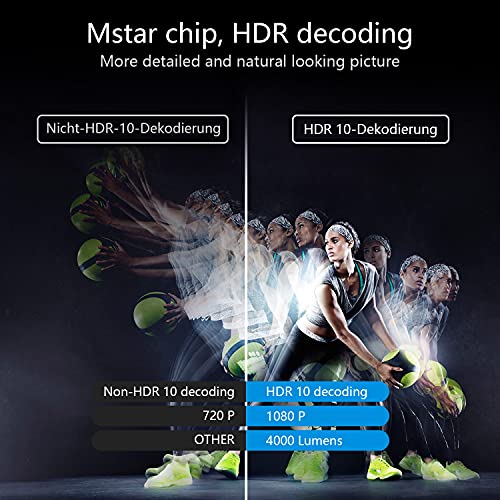 Este projector oferece a melhor resolução que se pode imaginar, com uma resolução máxima de 1920x1080P. Esta alta resolução permite que os seus filmes e jogos de vídeo sejam exibidos de forma muito clara. Também fornece uma vasta gama de cores com uma elevada relação de contraste de 9000:1, tornando as cores muito vivas e vívidas.