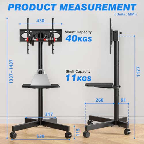 Este suporte de TV tem uma construção muito sólida, e pode ser facilmente deslocado graças às suas duas rodas frontais com travões. É perfeito para utilização em casa, escritório, escola, lobby, centro comercial, e muito mais. As pernas são suficientemente baixas para caber debaixo da maioria das camas ou mobiliário, o que lhe permite poupar espaço.