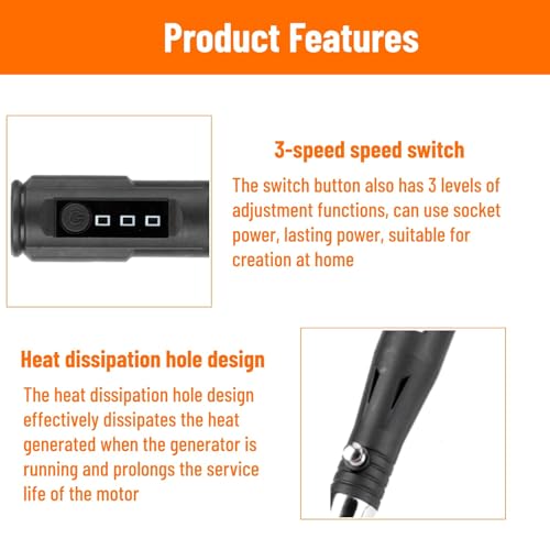 Dependendo dos acessórios e consumíveis fornecidos, pode utilizar a mini broca Dremel para gravar ou esculpir madeira, metal e outros materiais, cortar objectos de várias formas, polir superfícies, afiar ferramentas e outros objectos, remover ferrugem, remover tinta velha ou outros materiais, moldar fibra de vidro, contraplacado, etc.